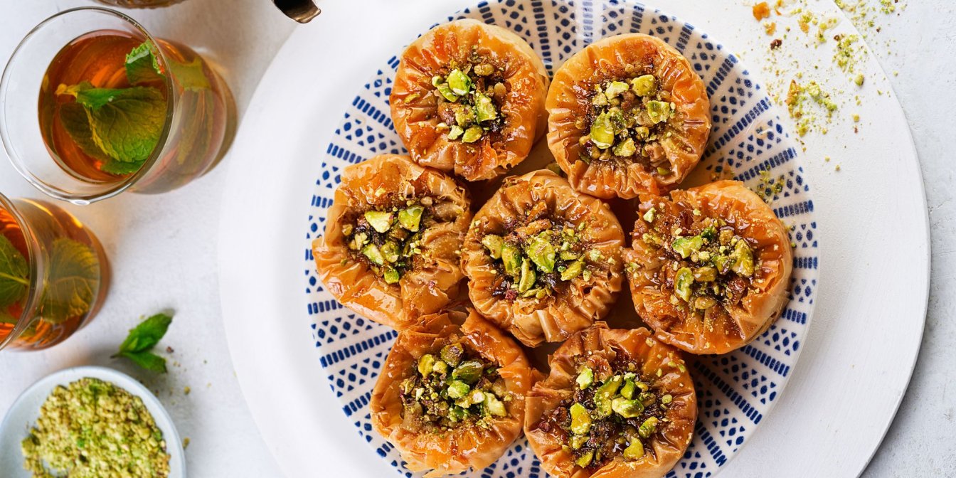 Якщо надтонкі листи тіста філо перемастити вершковим маслом, пересипати горіхами, спекти і просочити сиропом, вийде класична хрустка й соковита пахлава. Якщо до всього цього додати крем з вершкового сиру — вийде популярний сучасний десерт пахлава-чизкейк. А якщо обидва варіанти технічно поєднати у формочках для мафінів, вийде гарна лінива пахлава-квітка із сирним кремом.