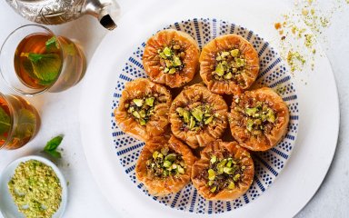 Ця тендітна випічка з тіста філо схожа на троянду, в пелюстках якої схований вершковий крем з медом і горіхами.