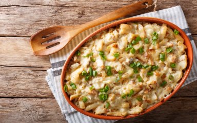 Ми не могли пройти повз цієї ідеальної картопляно-рибної запіканки. Наш актуальний і страшно популярний рецепт зараз — запечений хек у неймовірному соусі. Тут риба поєднується з картоплею та соусом зі сметани й тертого твердого сиру.
