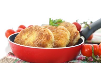 На пательні розігрійте олію. Коли вона почне шкварчати, обережно покладіть котлети. Обсмажуйте їх з обох боків, час від часу перевертаючи лопаткою, з обох боків упродовж 5 хвилин, потім зменшіть вогонь і досмажуйте ще 10 хвилин на маленькому.