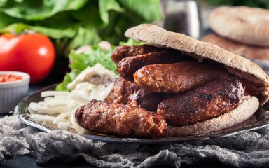 До м’ясних батончиків дуже пасує салат із маринованої цибулі та солінь. Ця пекучо-кисло-солона суміш овочів гармонійно поєднується із ситними печеними котлетами з яловичого фаршу.
