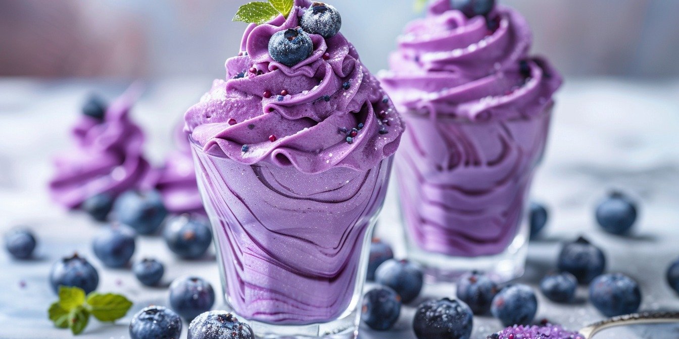 У десерт можна додавати горішки, печиво, вафлі — все, без чого ви не уявляєте собі ідеального смаколика! Можна також частину вершків збивати без чорничного пюре, натомість в іншу частину додавати його більше!