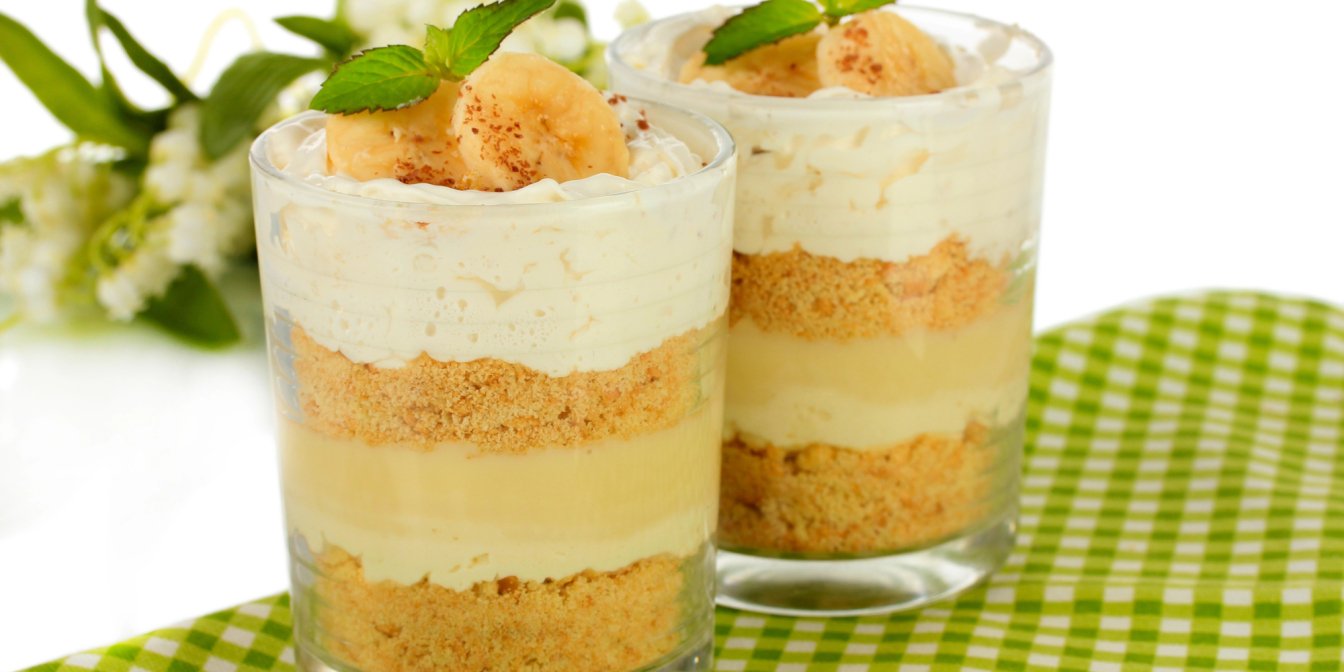 Розкришити печиво на дно креманки. Зверху викласти сирну масу, потім — шматочки бананів.