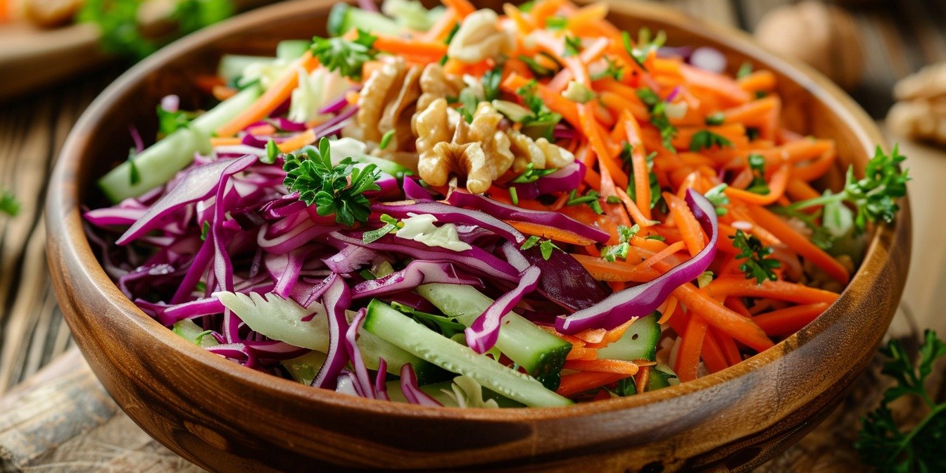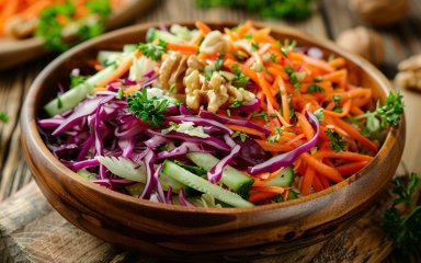 - У салаті є два види капусти — червона і білоголова. Стародавні греки вже були в темі того, яку користь приносить капуста людському організму, а Піфагор навіть написав про неї у своєму трактаті.