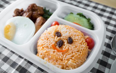 Діти відчиняють свої ланчбокси після спеціального музичного сигналу — і починають роздивлятися, що всередині. Їдять малюки в різний спосіб. Хтось у 3-4 роки вже чудово орудує паличками, комусь дають виделку, але нічого страшного нема і в тому, щоби брати їжу руками. У більшості дітей в ланчбоксах рис, сосиски, трохи овочів і щось солоденьке.