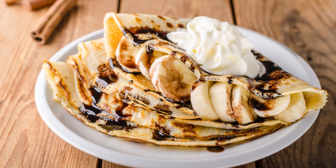 Ці млинці часто є в нашому меню. А все завдяки смачному банановому акценту. Ви захочете їсти їх на сніданок, обід, вечерю та десерт!