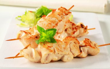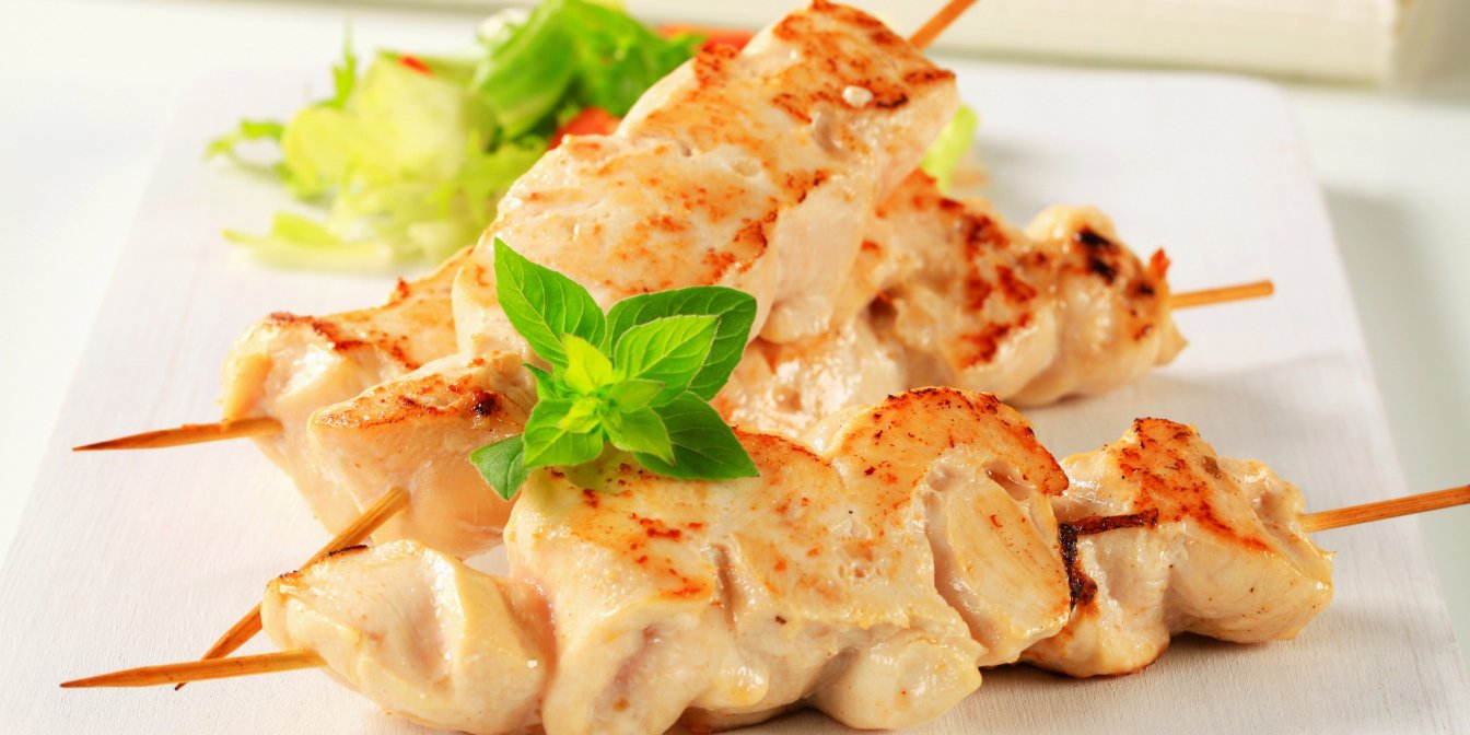 Просто замаринуйте нарізане філе курячої грудки за нашим рецептом і залиште на 30 хвилин, потім нанижіть на шпажки, а далі все зробить духовка.