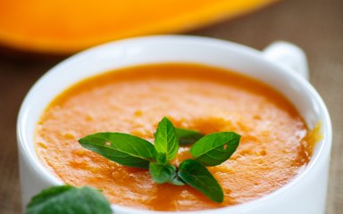 Коли і рис, і гарбуз зваряться (а це за 15-20 хвилин, якщо рис цілий, за 10-15, якщо рис мелений або за 5-7, якщо рис заздалегідь відварений), подрібніть кашу до пюреподібного стану — у блендері або товкачиком.