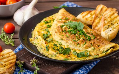 Але перш ніж створювати шедевральні омлети з великою кількістю компонентів і з використанням декількох кулінарних технік, пропонуємо спробувати класичний рецепт омлету. Він готується просто зі збитих яєць і молока, і приправляється сиром пармезан і зеленню.