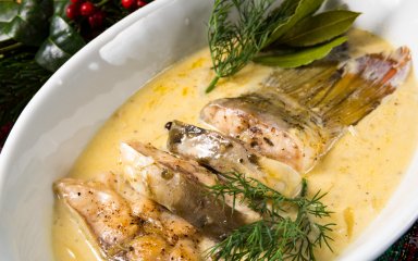 Щодо риби, то можна взяти будь-яку доступну — і пісний хек чи минтай, і річкову (у нас на фото короп), і навіть червону рибку, якщо потрібна особлива страва. У комбінації із сирним соусом їхні смаки прекрасно розкриються і стануть ще багатшими.