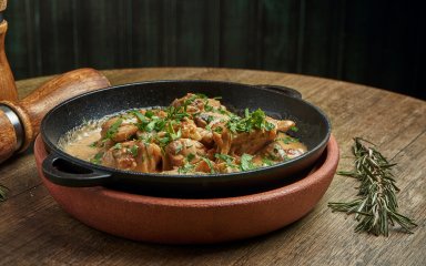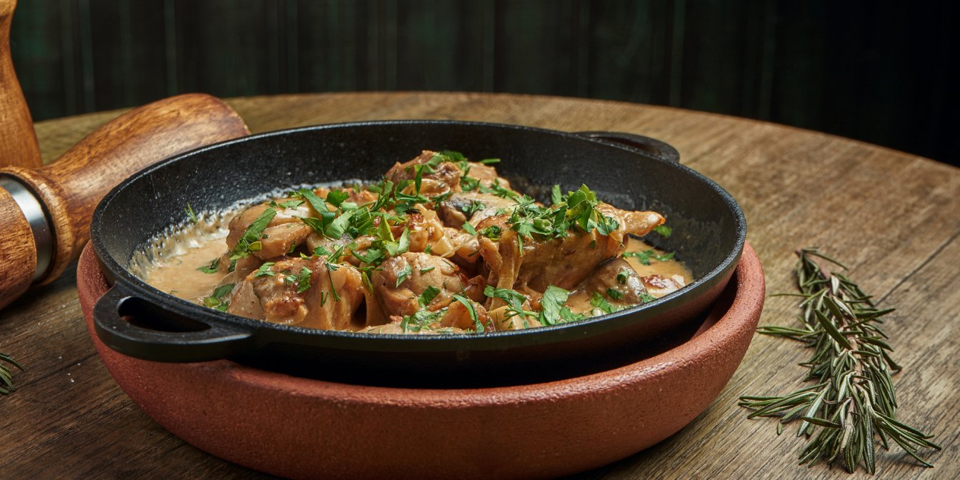 Щодо м’яса, то тут є вибір — готувати або гомілки, або стегенця. Страви зі стегенцями відрізняються ніжнішою текстурою. Якщо вас лякає поєднання вершкового соусу з кінзою, то це дуже смачно.