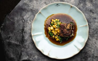 Артем Кабулахін (шеф-кухар без закладу, переможець «МастерШеф. Професіонали», 4 сезон — Ред.) поєднує локальні продукти та азійські техніки. Яловиче серце, мариноване у комбучі, смажиться, немов сатай на вулиці. Подає з грибами та грибним беарнезом.