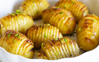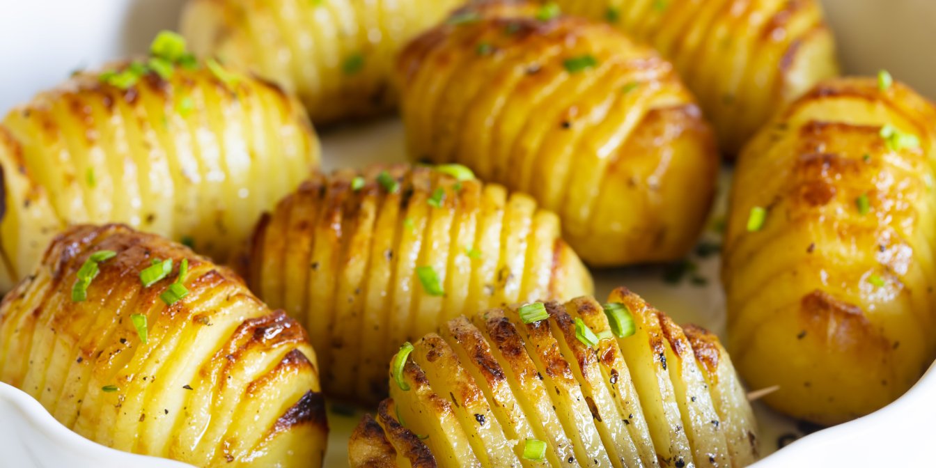 Готуємо картоплю, яку приємно і споглядати, і їсти! Це улюблена страва дітей та дорослих, багатих і бідних, м’ясоїдів і вегетаріанців. Просто надріжте, змастіть і запечіть — навіть чистити не потрібно!