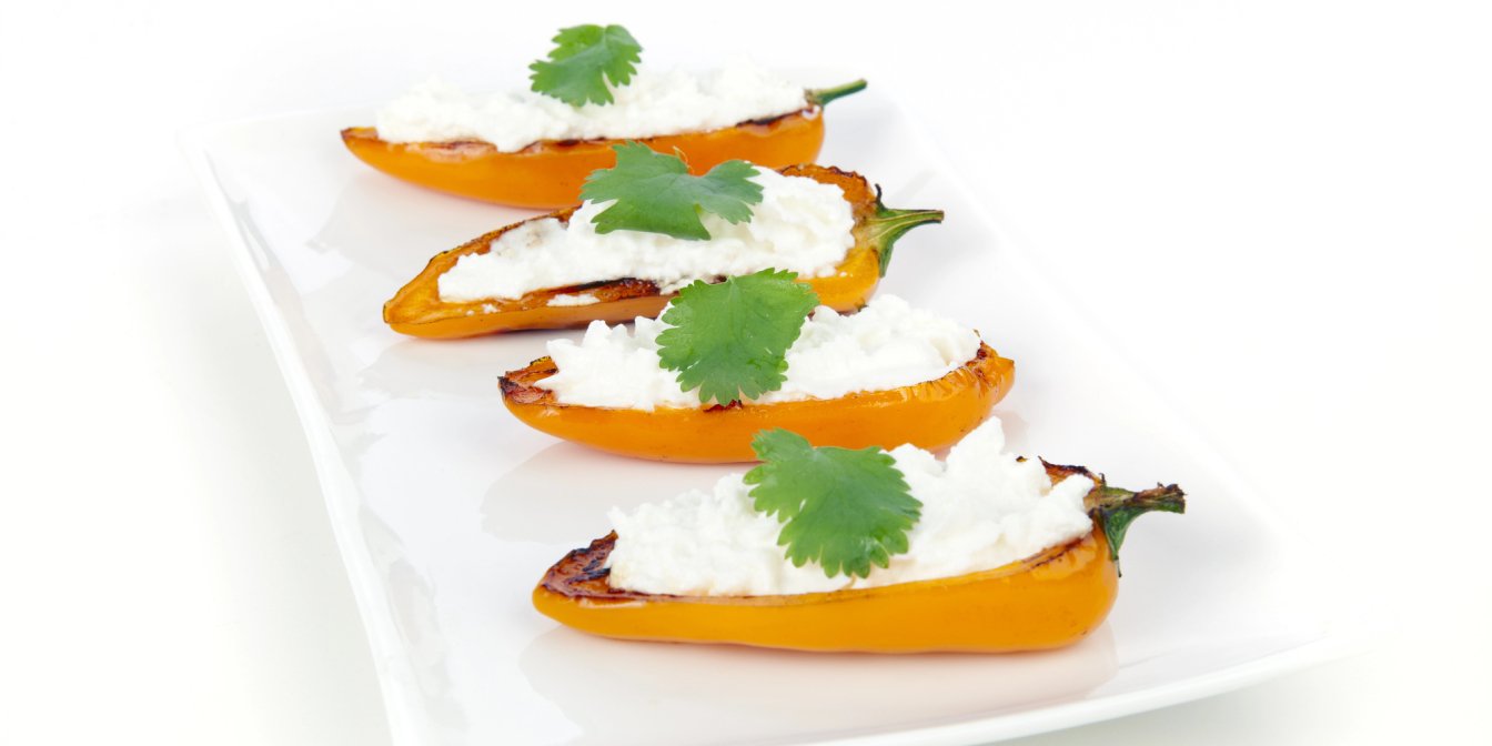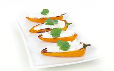 Перець, фарширований двома видами сирів, смакує дивовижно. Причому поєднувати можна будь-які сири та в яких завгодно пропорціях — страву цим не зіпсуєш! У нашому випадку це — бринза й вершковий сир.