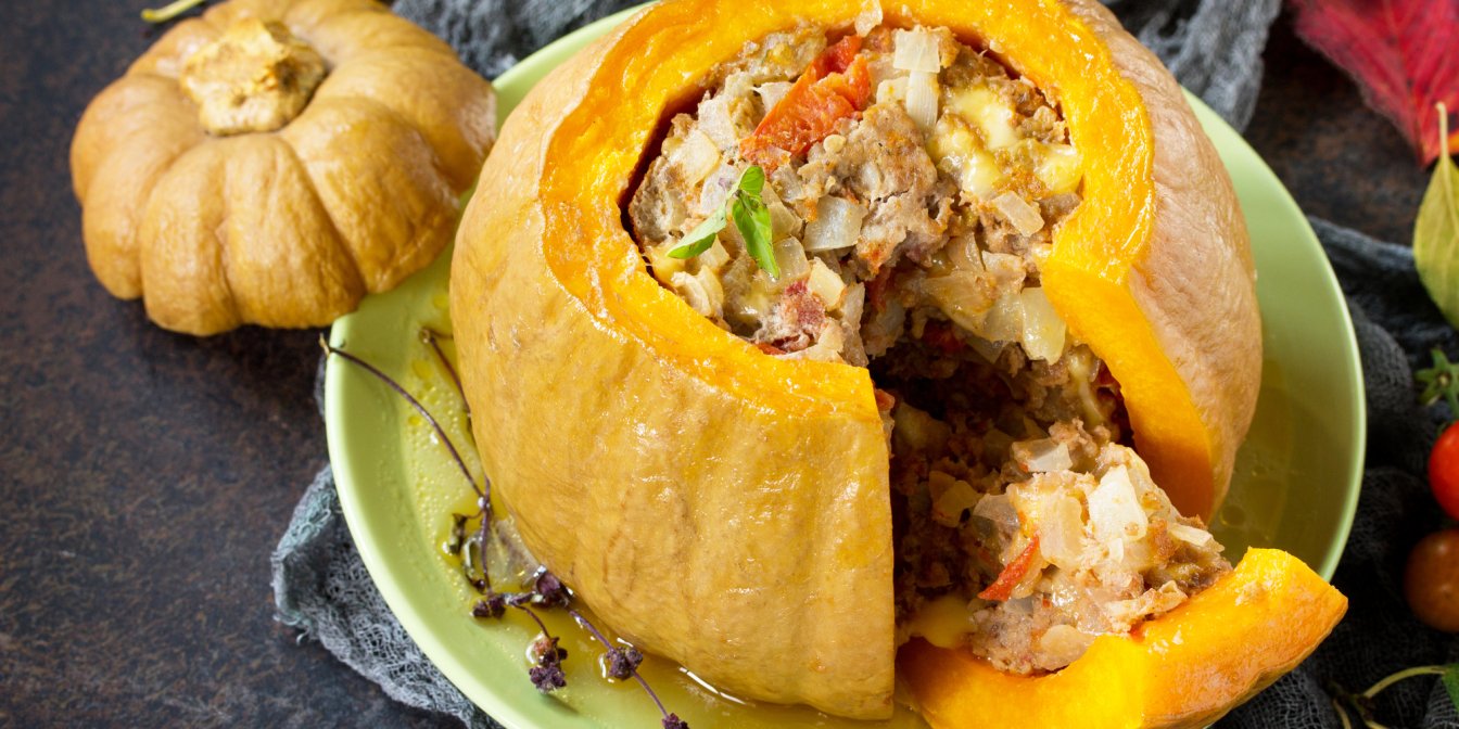 Любите гарбуз? Тоді неодмінно частіше його фаршируйте, це дуже смачно! Яскрава м’якоть гарбуза просочується соками м’яса і стає невимовно смачною.