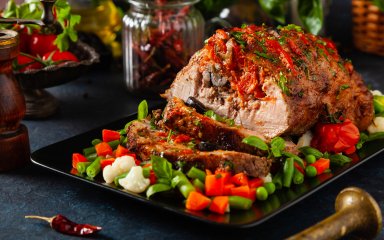 Не знаєте чим вразити рідних і друзів? Прикрасьте святковий стіл напрочуд гарною та смачною стравою — запеченою свининою, фаршированою овочами. Ох і свято вийде!