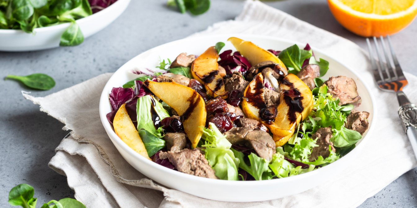 Теплий салат із грушею і курячою печінкою — це страва, повна різних і контрастних смаків, які добре поєднуються один з одним.