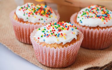 Розкладіть тісто у формочки для кексів на 1/3 їх об’єму. Випікайте за температури 180°C 25 хвилин.