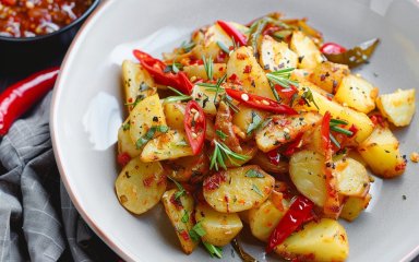 Чому б нам не запозичити такий популярний рецепт смаженої картоплі? Для нього потрібні лише картопля, цибуля, перчик, сіль і олія. У деяких рецептах додають ще часник. Якщо захочете це зробити, додавайте його наприкінці, адже він легко горить.
