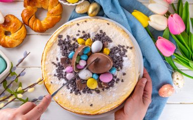 Прикрасьте зверху декором із шоколаду, цукровими посипками та яєчками із мастики. Така сирна паска не тільки потішить вас своїм смаком, але й створить особливий настрій.