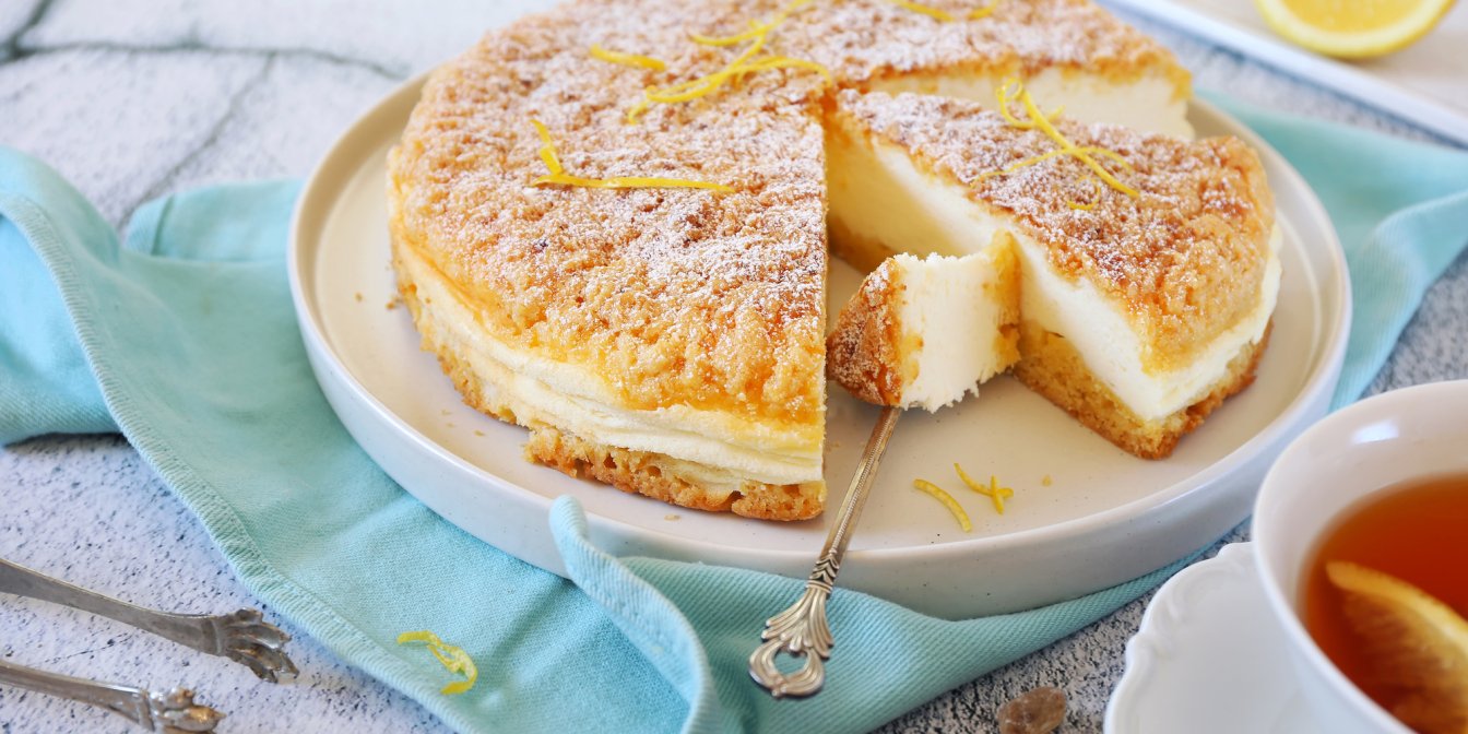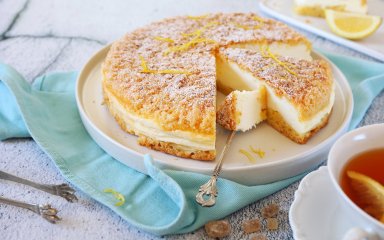 Крихкий вершковий корж і повітряне йогуртове суфле — якщо вам подобається пишна випічка майже без тіста, то це саме такий пиріг.