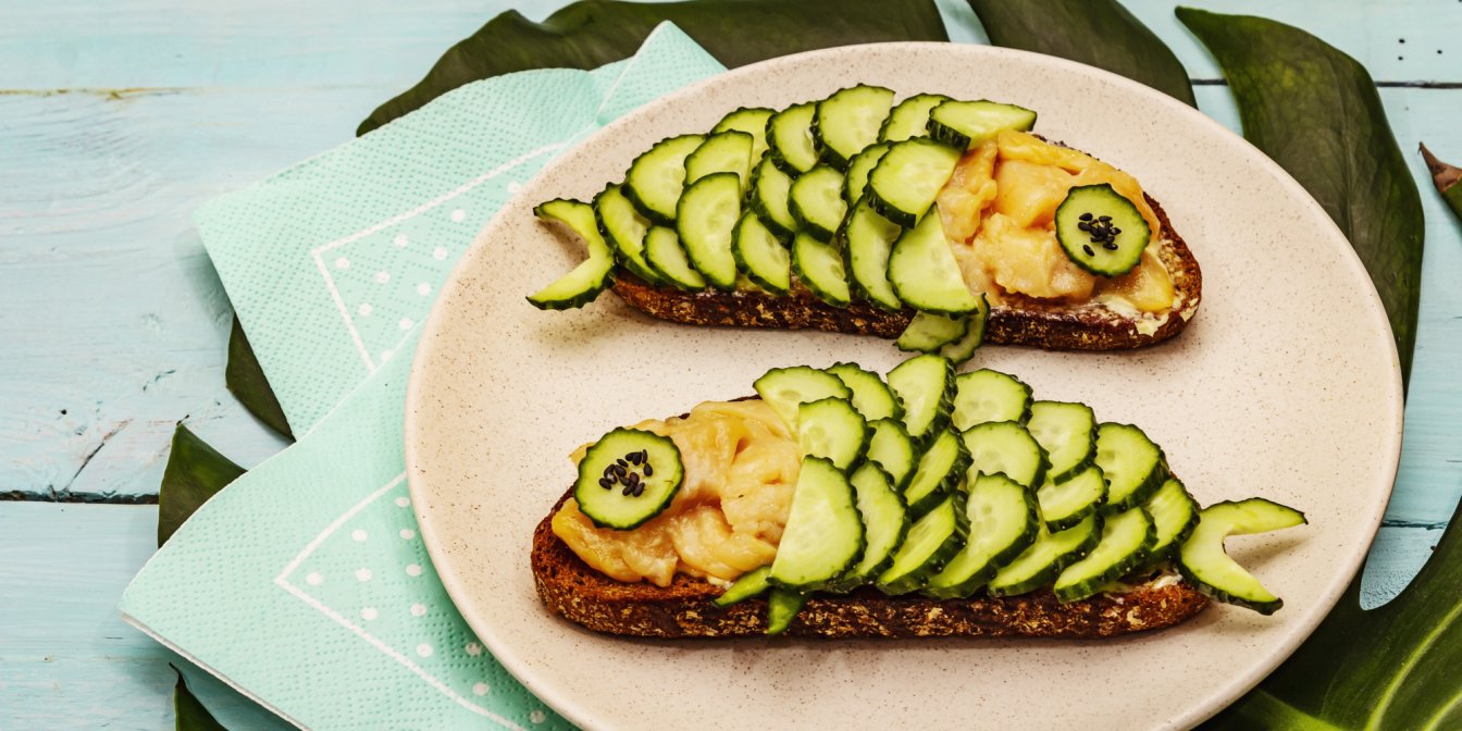 Креативна закуска для дітлахів — бутерброд «Рибка» з огірком і лососем
