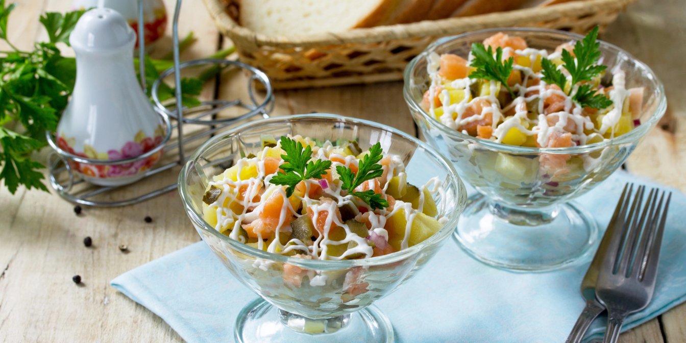 Для цього салату потрібні відварена картопля, мариновані огірки та консервований горошок. Також знадобиться квашена капуста, яка завершить це чудове поєднання.