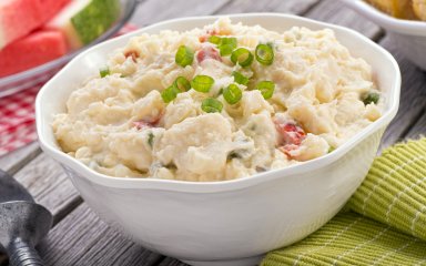 Рецепт від Еat Тhis пропонує полегшити картопляний салат і заправити його соусом на основі грецького йогурту. Додайте до нього діжонської гірчиці та білого оцту за смаком і ретельно перемішайте.