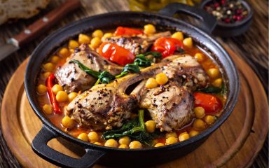 Ніжна, м’яка і соковита баранина ідеальна у поєднанні з нутом, шпинатом, і запеченим перцем. З легкими димними нотами копченої паприки — цю страву полюблять поціновувачі близькосхідної кухні. Вона точно сподобається тим, хто шукає новий та смачний рецепт приготування м’яса.