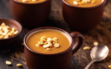 Розподіліть карамель у чашки. Коли вона охолоне до кімнатної температури, поставте її на 30 хвилин у холодильник. Потім посипте подрібненими горіхами (мигдалем, волоськими горіхами чи арахісом).