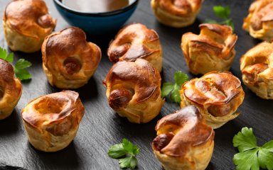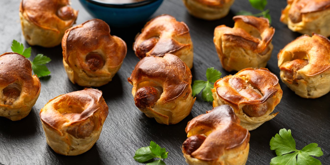 «Жаба в норі» міні — це варіація відомого йоркширського пудингу. Завдяки начинці він перетворюється на веселу закуску або перекуску на кшталт хот-дога. Чудовий варіант для вечірки, святкового столу або пікніка.