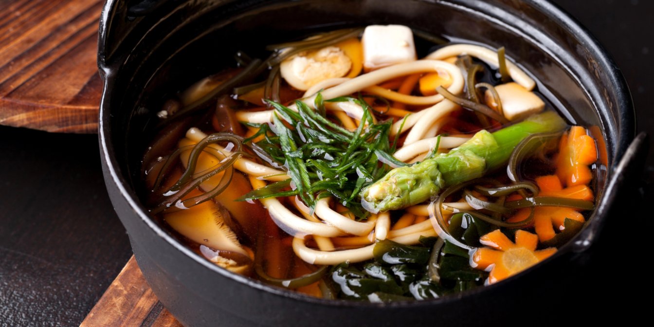 Японська трапеза починається супом місо — він зігріває тіло і збуджує апетит. А приготувати ви його зможете дуже швидко. Головне — мати цибулину, трішечки шинки та спаржі. Ну й, звісно, пасту місо, завдяки якій суп набуде специфічно японського смаку! І вже після місо-супу можна сміливо братися до суші.