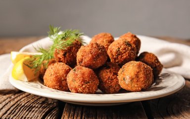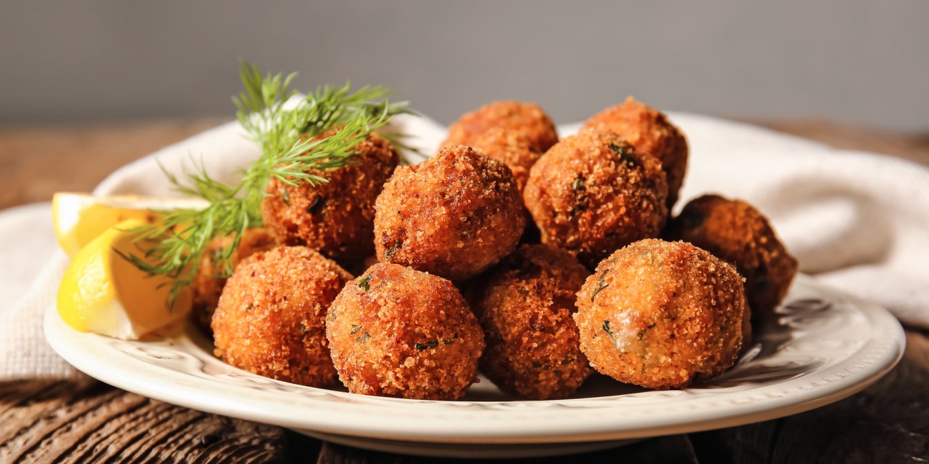 Рибні кульки за цим рецептом нагадують одразу три страви: соковиті рибні котлети, кремові картопляники, хрусткі крокети. Для них вам знадобиться варена картопля, смажена риба, сире яйце, цибуля, приправи, борошно, сухарі, олія.
