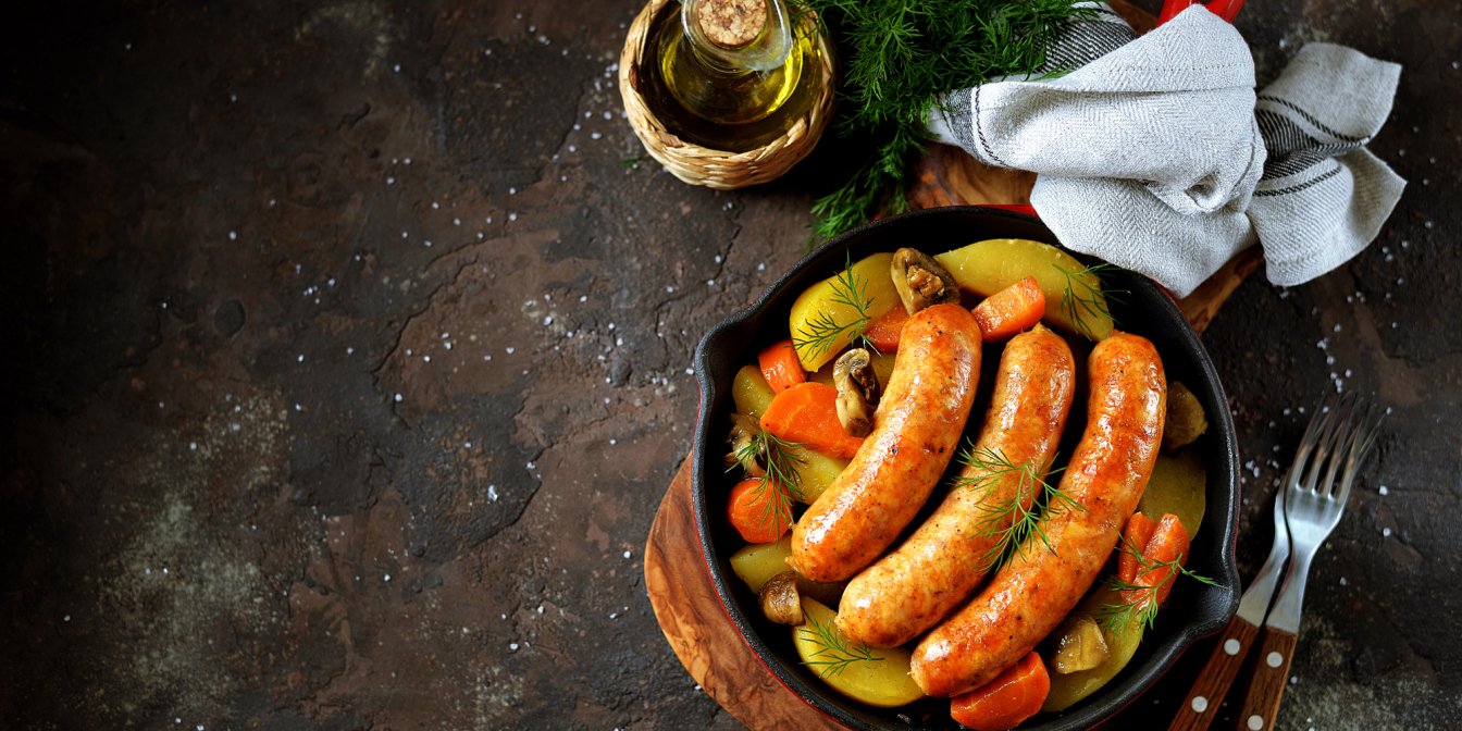 Головна умова успіху цієї запіканки — вибрати правильні сосиски. Це повинні бути сирі сосиски для смаження на грилі чи сковороді. Такі можна знайти у м’ясних відділах супермаркетів поруч із фаршем та свіжим м’ясом. Також можна використовувати німецькі білі сосиски для гриля або заготовки домашньої ковбаси.