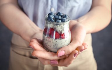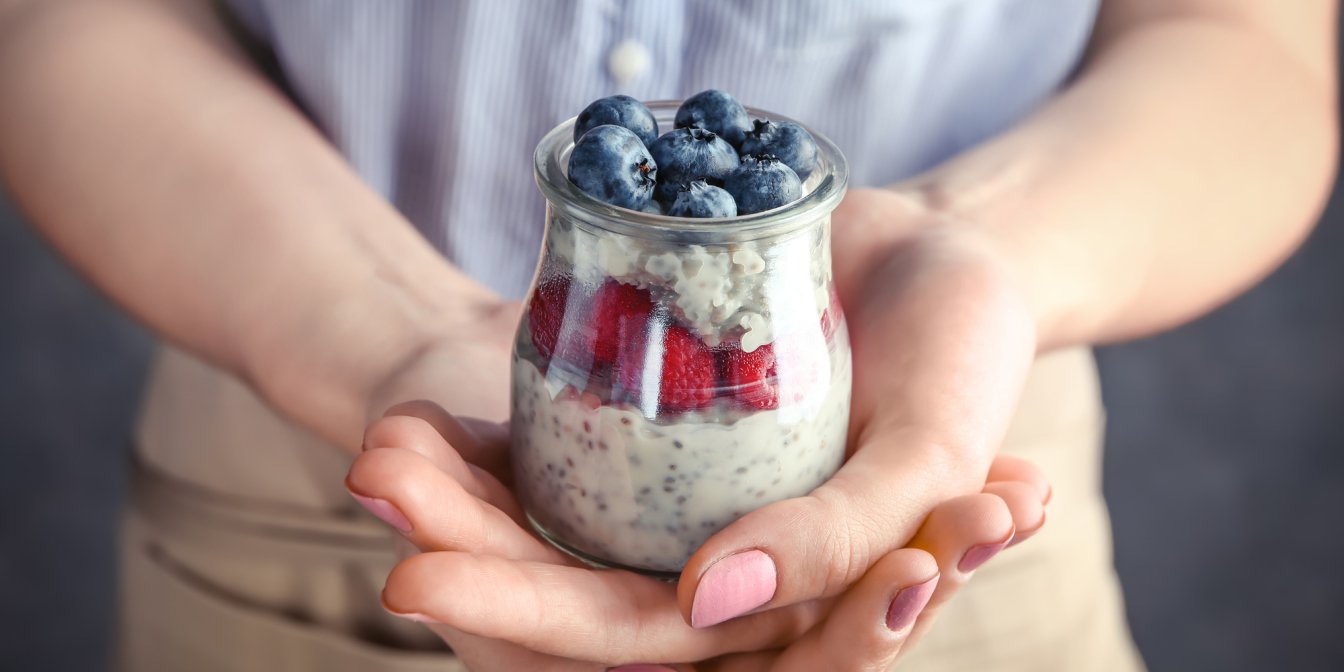 Залийте молоком, йогуртом чи кефіром вівсяні пластівці або насіння чіа, доповніть фруктами й горіхами — і вранці у вас на столі буде готова смачна страва з вітамінами та клітковиною.
