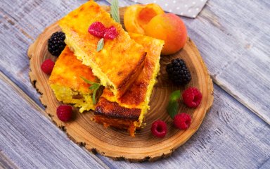 Запіканка з консервованими персиками — ніжний і легкий сніданок для всієї родини