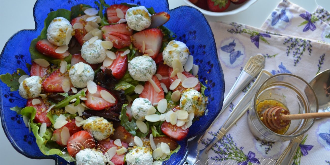 Рецепт салату з полуницею та сирними кульками