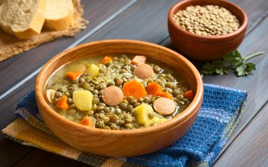 І ще одна легка страва без м’яса — це суп із сочевицею і молодою капустою.