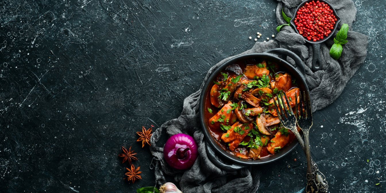 Як швидко приготувати куряче м’ясо на сковороді? SHUBA пропонує зробити смачну підливу на основі томатної пасти з овочами. Смачний соус добре просочить куряче м’ясо, а додавання трав та прянощів лише покращить смак страви.