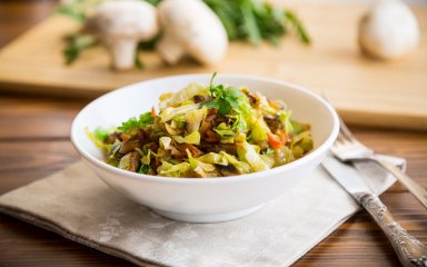 Молода капуста, тушкована з копченою свинячою грудинкою — рецепт на щодень