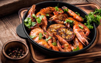 Але ніщо не зрівняється з добре просмаженими свіжими чи свіжомороженими креветками. Усе завдяки хітину у панцирах, який зберігає смак концентрованим. Добре доповнити його можуть свіжі лимони та соус теріякі.