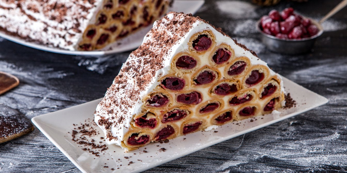 Безпрограшне поєднання вишні, пісочного тіста та ніжних збитих вершків робить торт фаворитом на свята.
