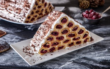 Приготуйте: Торт із трубочок з вишнями зі сметанним кремом