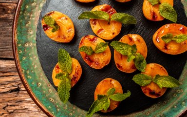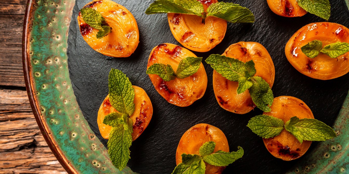 Якщо ви збираєтеся влаштувати барбекю, абрикоси на грилі з медом і м’ятою стануть незамінним десертом. Солодкі й ароматні фрукти чудово поєднуються з димком, свіжою м’ятою і легкою медовою нотою.