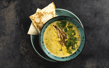 Готовий суп насипте в тарілку, посипте шматочками бекону і подрібненою зеленню. Окремо до супу подайте тортилью.