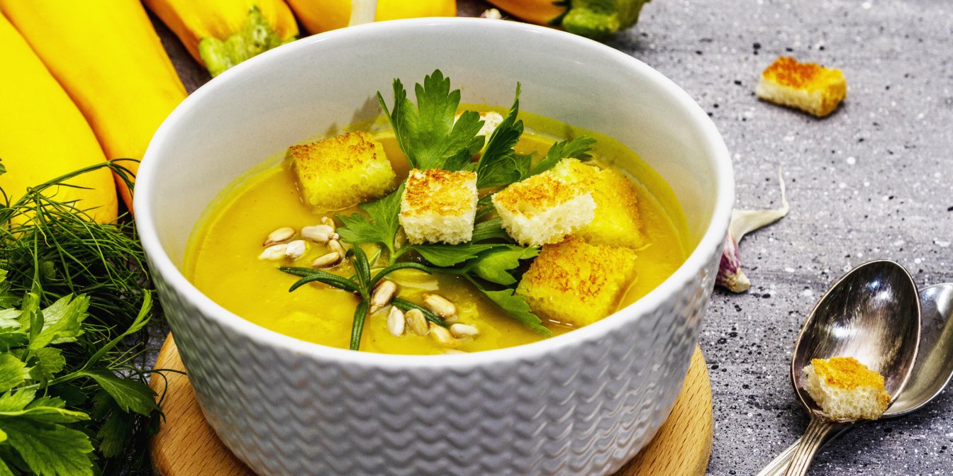 Не буває літа без страв з кабачків. Їхня ніжна текстура і м’який, не надто виражений смак ідеально підходять для створення крем-супів. Приготуйте крем-суп з кабачків від Лізи Глінської з картоплею, морквою і плавленим сиром!