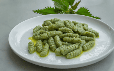 В інгредієнтах зазначено масу бланшованої кропиви. Можна замінити її шпинатом або підготувати кропиву та шпинат у співвідношенні 1:1.