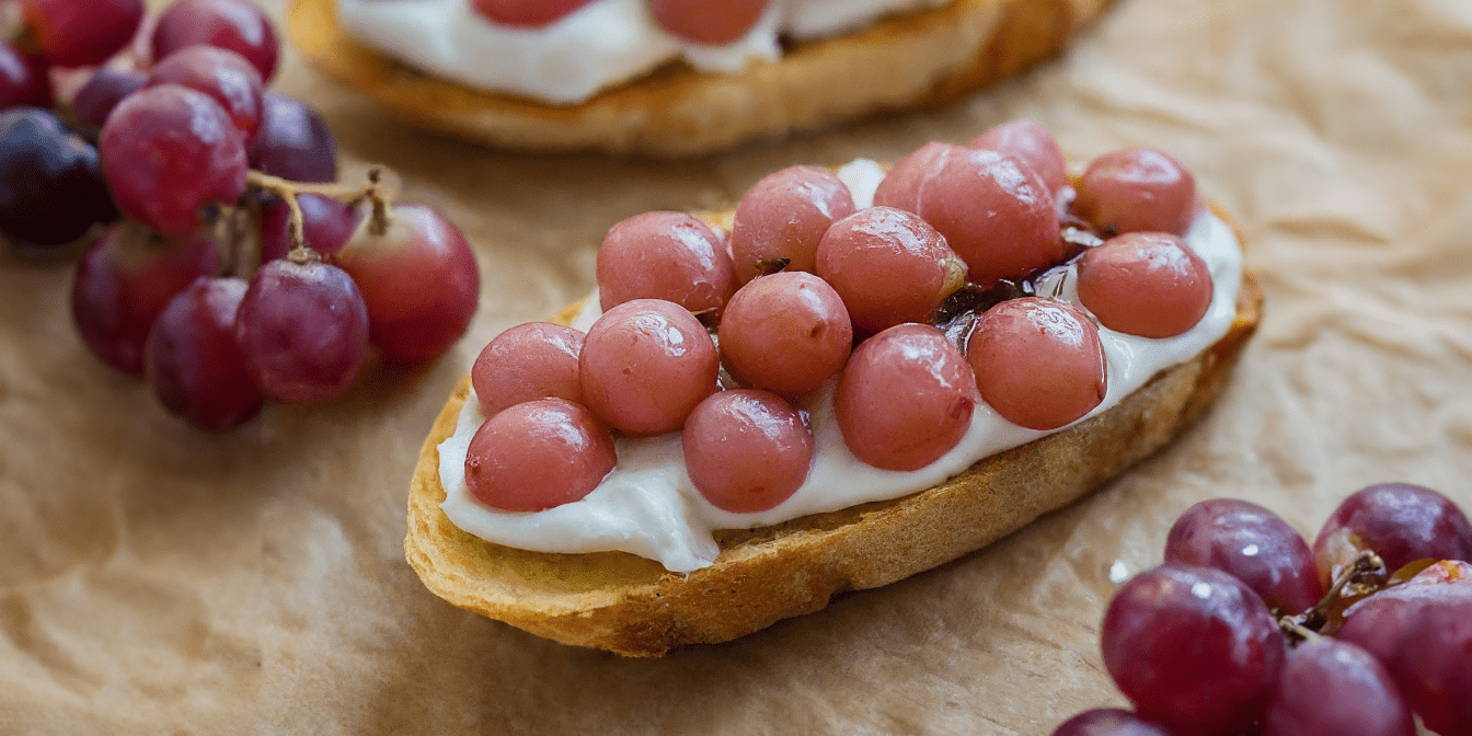 Рецепт брускети з печеним виноградом та камамбером