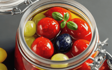Консервований виноград з помідорами чері на зиму пасуватиме до м’ясних страв, але якщо не терпиться з’їсти прямо з банки — не обмежуйте себе.