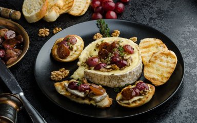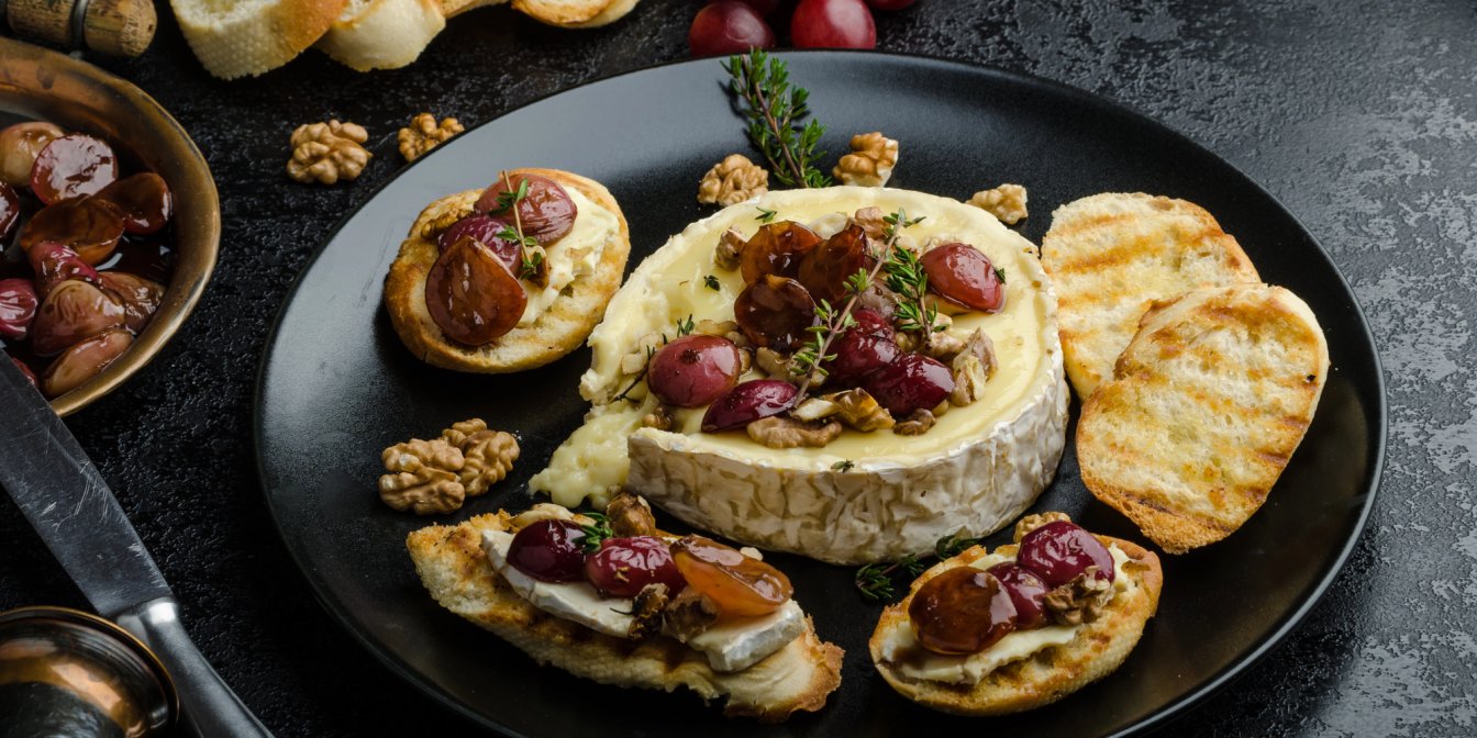 Запечений камамбер з виноградом — гаряча закуска для гурманів